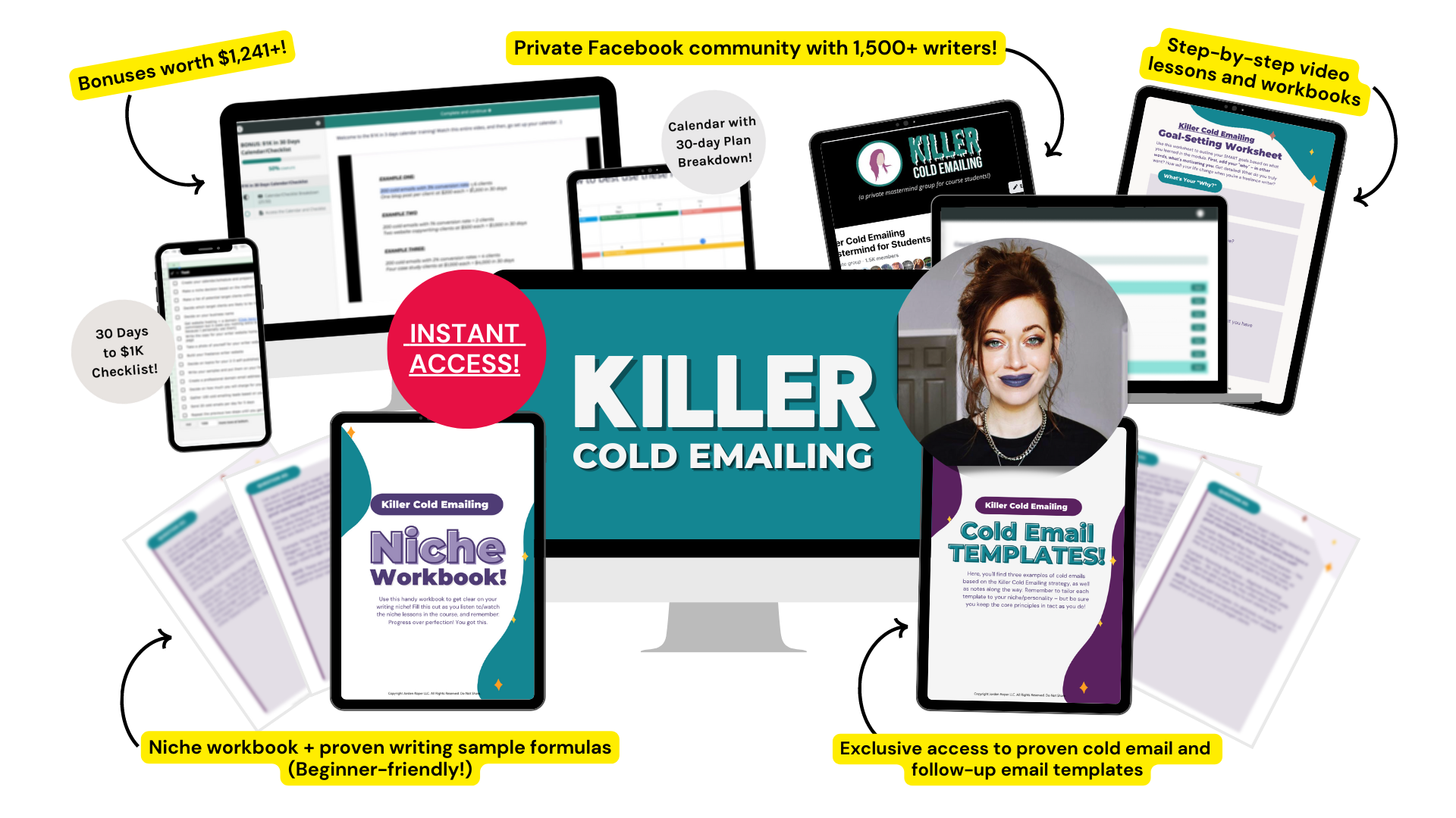 ✔️ Over $1,200 worth of incredible bonuses, including the Profitable Client Master List and Freelance Writer Website Template Sheets!